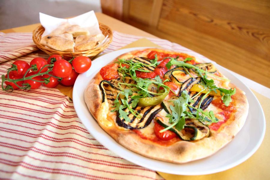mit Tomatensoße, Mozzarella, verschiedenes Gemüse und Oregano (vegetarisch)